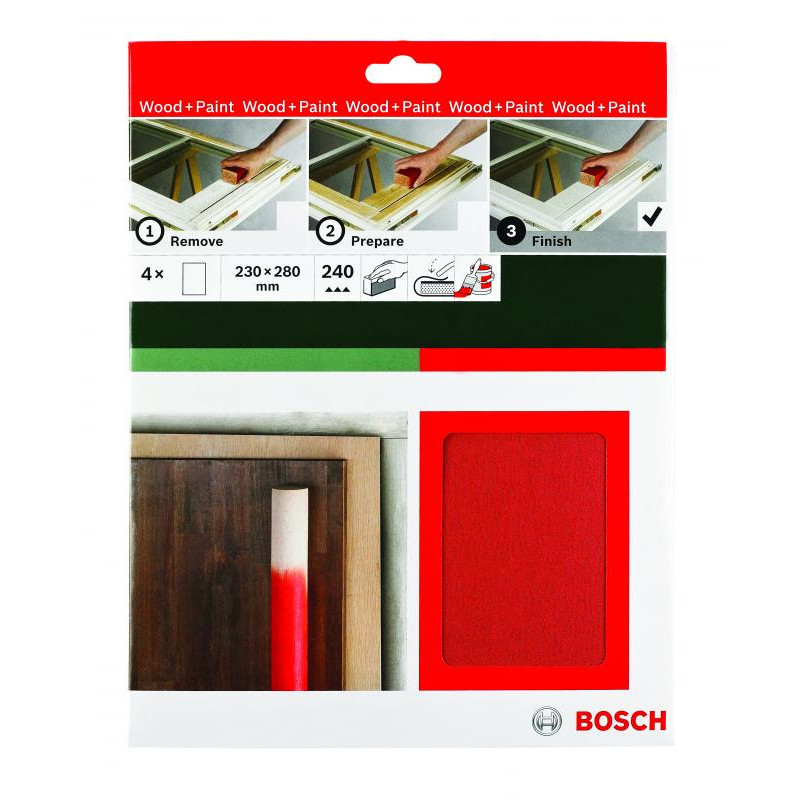 Emballage: 1Marque: BoschRéférence: 2609256C38EAN: 3165140646192Description: PONÇAGE MP (Feuille abrasive à main bois 230x280mm K240 (4))