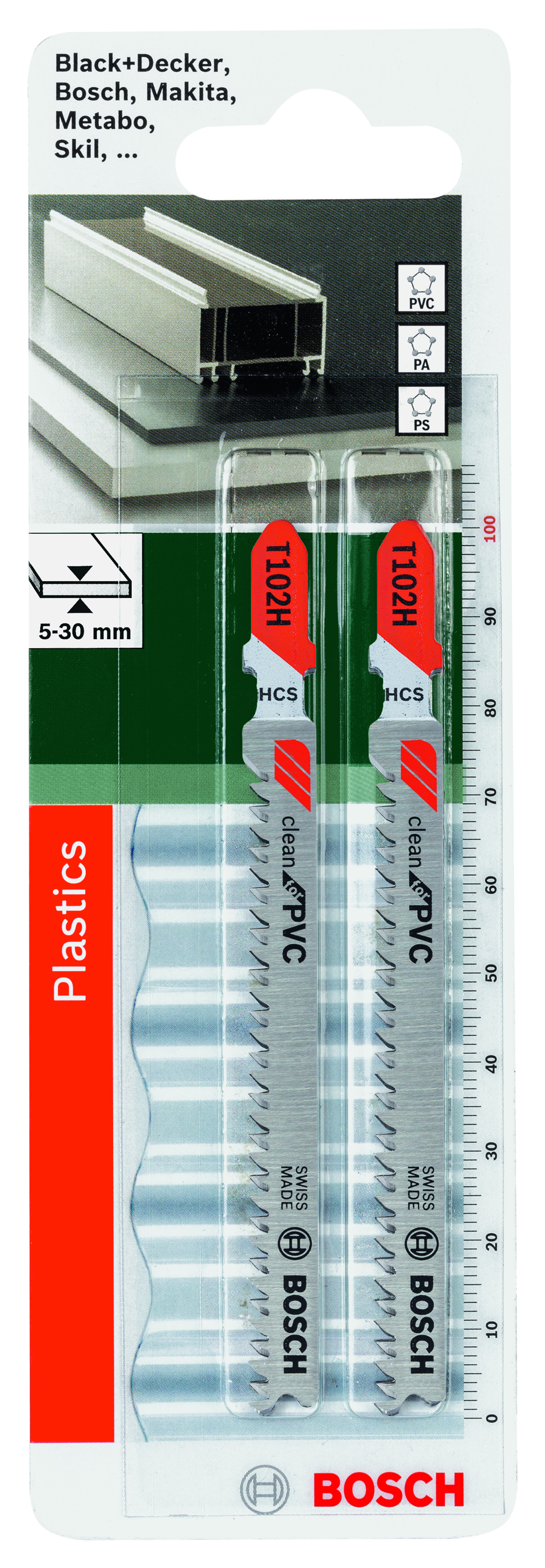 Emballage: 2Marque: BoschRéférence: 2609256C57EAN: 3165140691611Description: LAMES SCIES SAUT./EGOÏNE MP (LAME DE SCIE SATEUSE T102H, CLEAN FOR PVC (2))