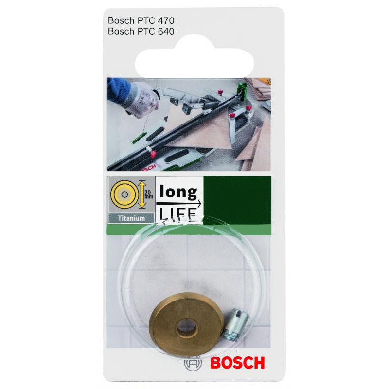Emballage: 1Marque: BoschRéférence: 2609256D80EAN: 3165140848619Description: Accessoires Systèmes (Galet de coupe à revêtement de titane)