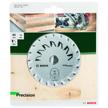 Emballage: 1Marque: BoschRéférence: 2609256D81EAN: 3165140853583Description: LAMES SCIES CIRC. MP PKS 10.8V LI (LAME DE SCIE CIRCULAIRE 85x1.1/0.7x15 20T)