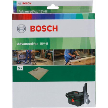 Emballage: 5Marque: BoschRéférence: 2609256F68EAN: 4059952590059Description: Sac-filtre en papier AdvancedVac 18V-8