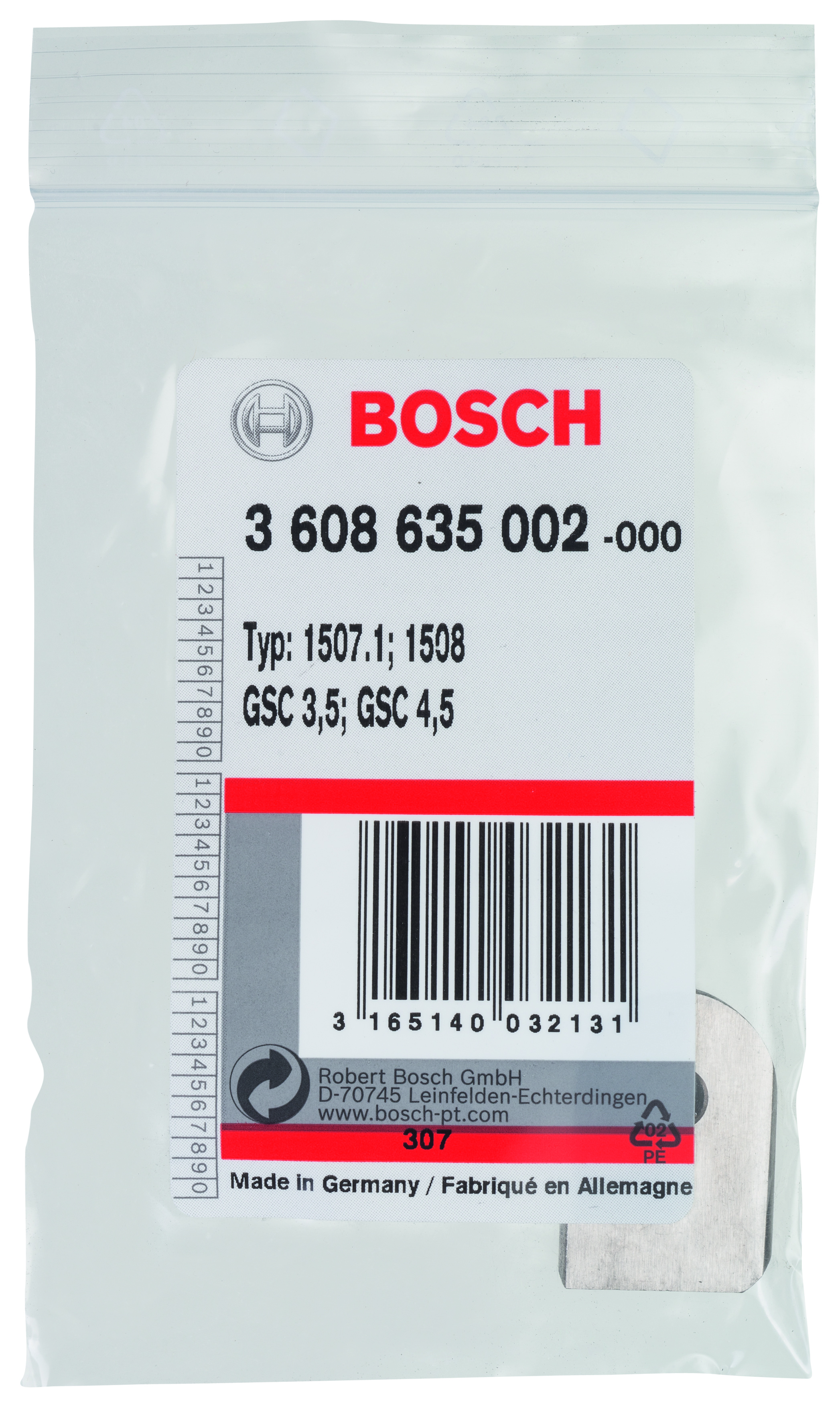 Emballage: 1Marque: BoschRéférence: 3608635002EAN: 3165140032131Description: Couteau inférieur GSC 3,5/4,5