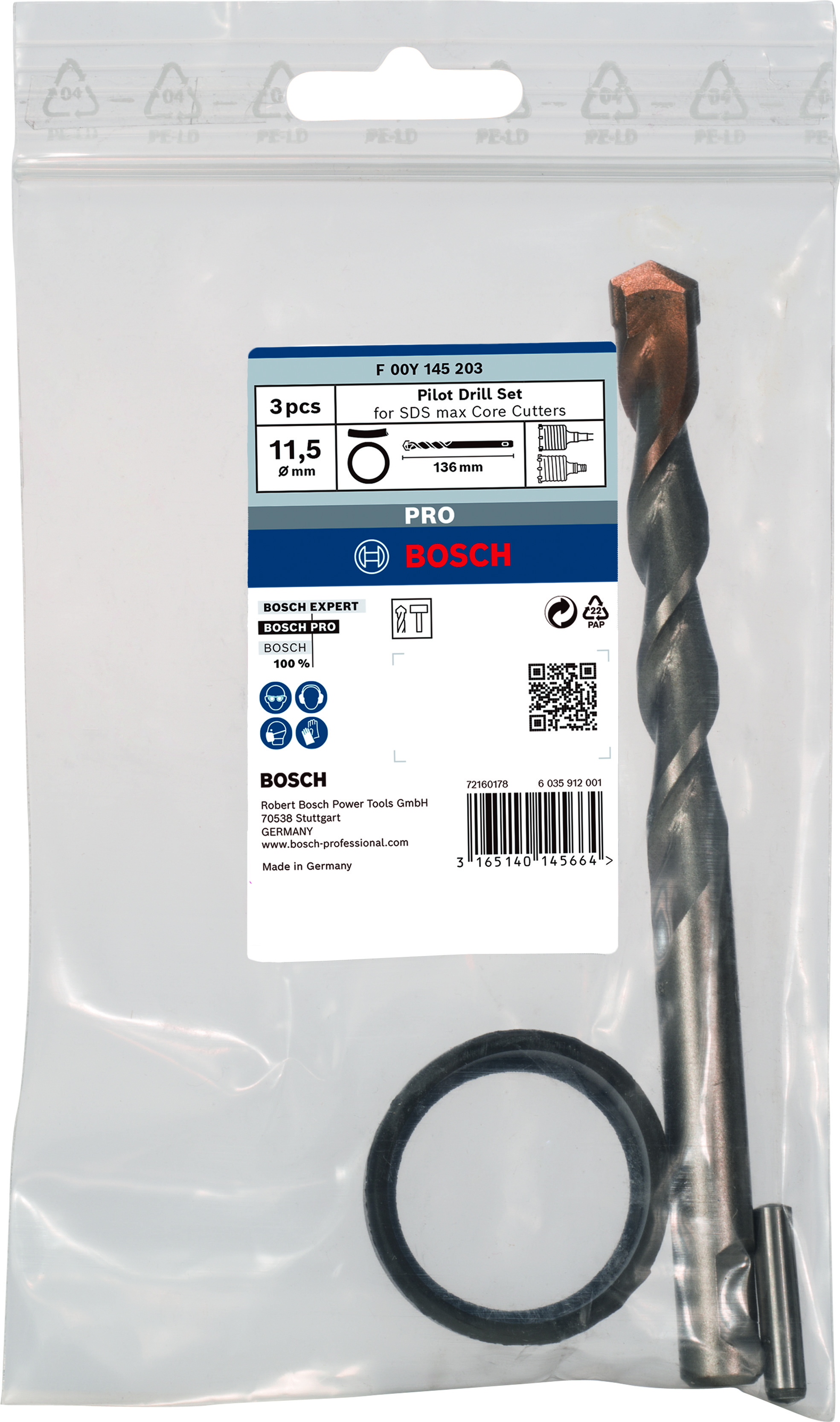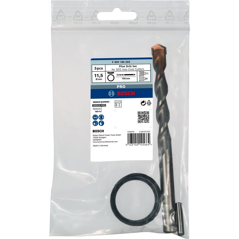 Emballage: 1Marque: BoschRéférence: F00Y145203EAN: 3165140145664Description: Set foret centrage couronne monobloc PRO 115,5x84 mm