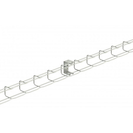 Description: Berceau sans vis UC50 pour chemins de câbles fils Cablofil CF30 et CF54 de largeur 50 mm, Ecartement mur 100mm,Entraxe entre les fils 50mm- pour fixation murale de charges légères à moyennes et pose au sol charge 12daN - finition GS