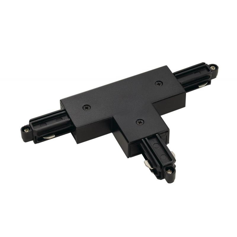 Connecteur en T, pour rail conducteur HT monophasé, modèle de montage apparent, terre à l'extérieur, gauche, noir