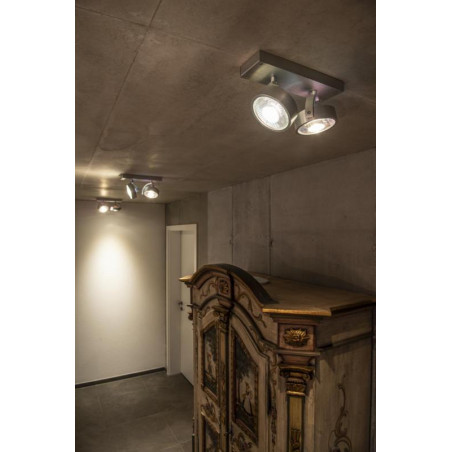 Applique et plafonnier KALU, à 2 lampes, QPAR111, rond, alu brossé, max. 150 W