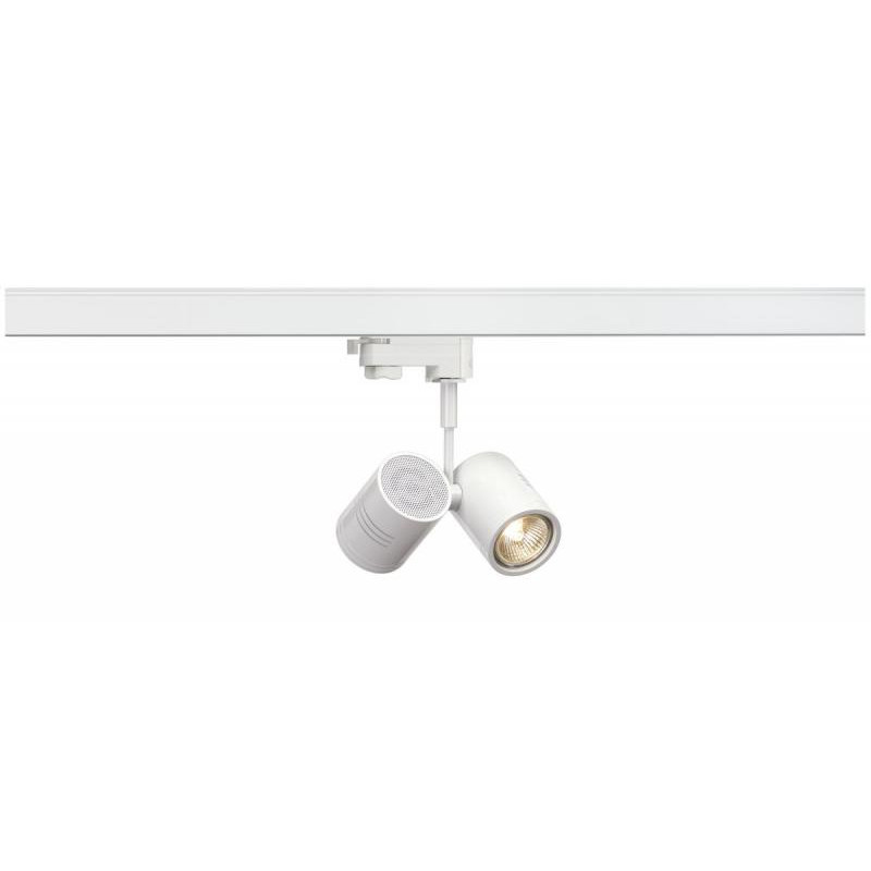 Description: Spot BIMA 2, pour rail triphasé 230 V, à 2 spots, QPAR51, rond, blanc mat, max. 100 W, adaptateur triphasé incl.
