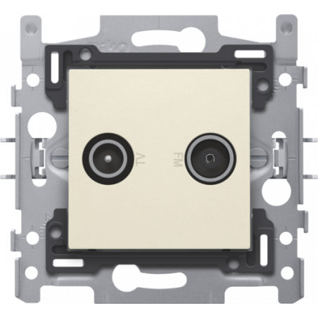 Description: 2 connexions coaxiales mâles simples pour TV et FM Wyre (Telenet-Interkabel), socle et set de finition, couleur cream