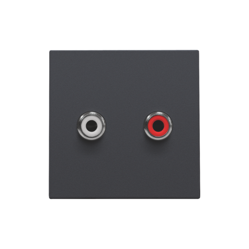 Description: Set de finition avec 2 prises audio CINCH, également pour encastrement dans des goulottes d'installation, anthracite