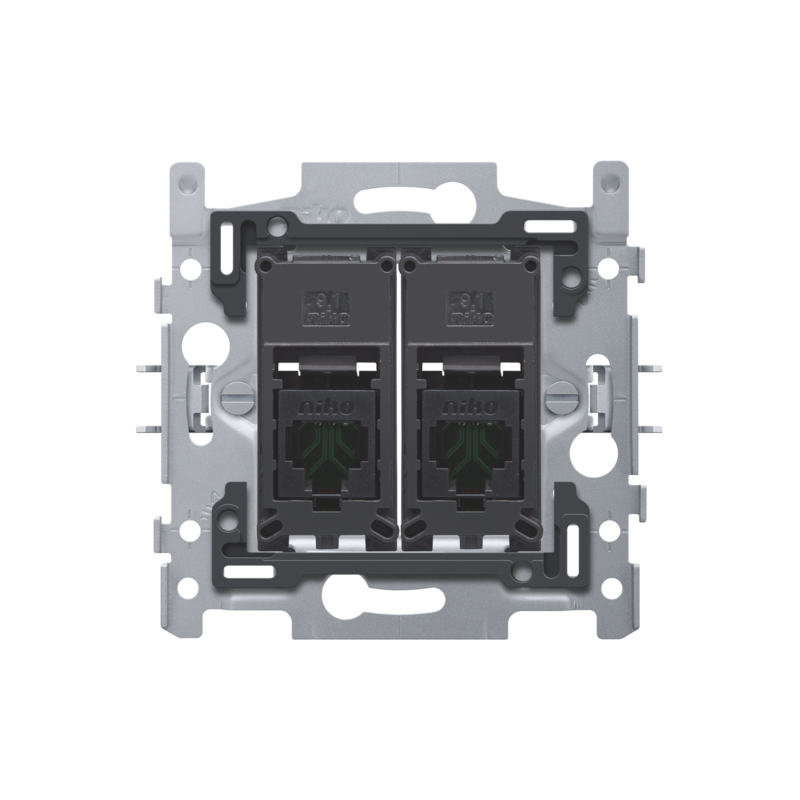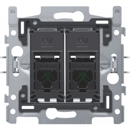 Description: 2 connexions RJ45 UTP Cat. 5E, modèle plat, incl. socle 60 x 71 mm avec fixation par griffes