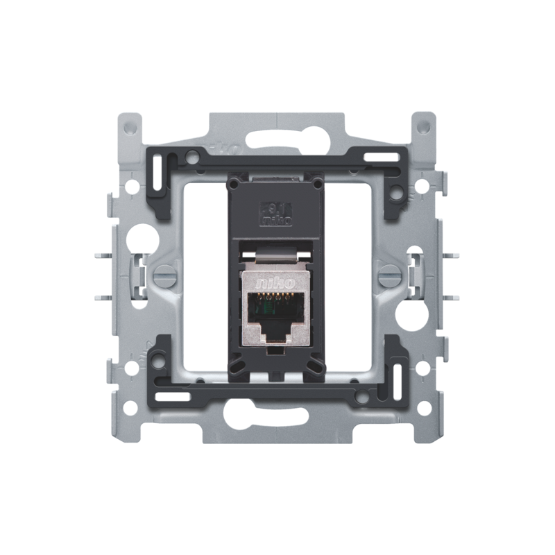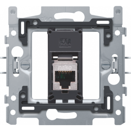 Emballage: 1 - 10 Marque: NikoRéférence: 170-65155EAN: 5413736267022Description: 1 connexion RJ45 STP Cat. 5E, modèle plat, incl. socle 60 x 71 mm avec fixation par griffesCouleur: 0