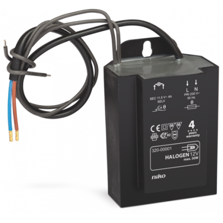 Description: Transformateur ferromagnétique de 35 W avec raccordements filaires du côté primaire et du côté secondaire