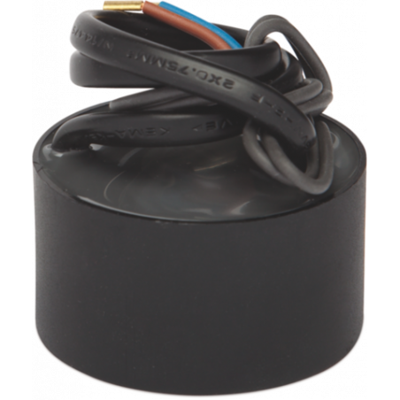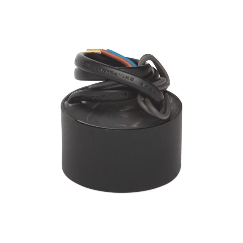 Description: Transformateur électronique rond de 70 W avec raccordements filaires du côté primaire et du côté secondaire
