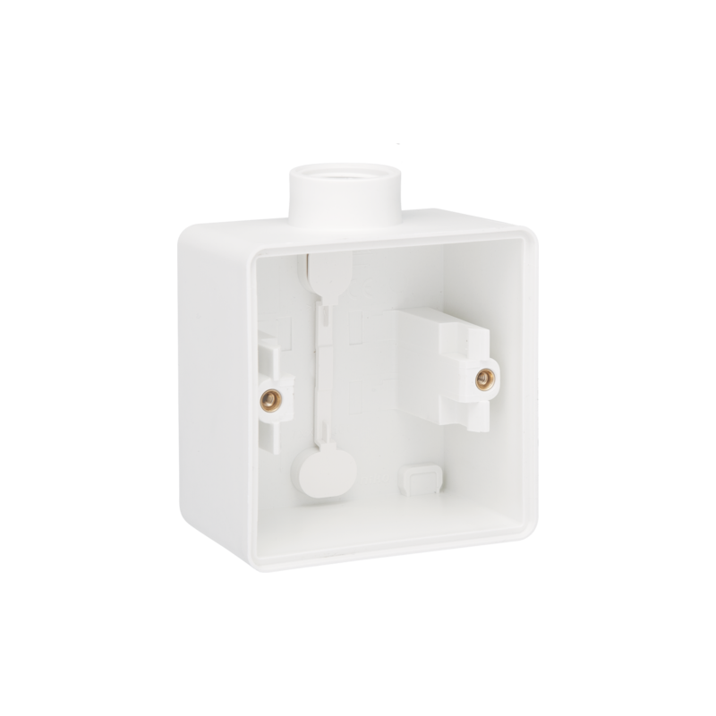 Emballage: 1 - 10 - 100 - 2600 Marque: NikoRéférence: 701-84101EAN: 5413736305540Description: BOÎTE EN SAILLIECouleur: Blanc