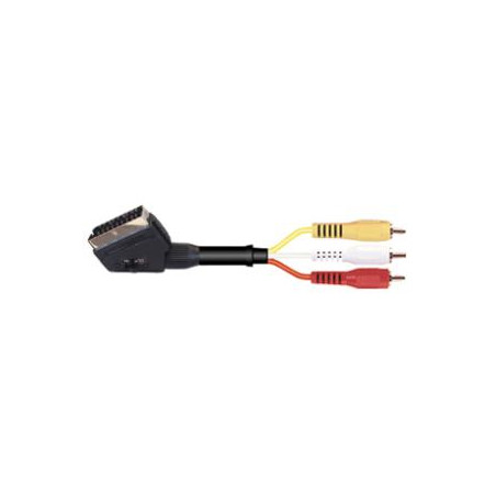 CÂBLE - FICHE PÉRITEL MÂLE + INTERRUPTEUR - 3X FICHE RCA MÂLE - 1,5M