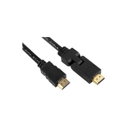 Description: CÂBLE - FICHE HDMI-A MÂLE - FICHE HDMI-A MÂLE - PLAQUÉ OR - TÊTE ROTATIVE 90Ø -3M