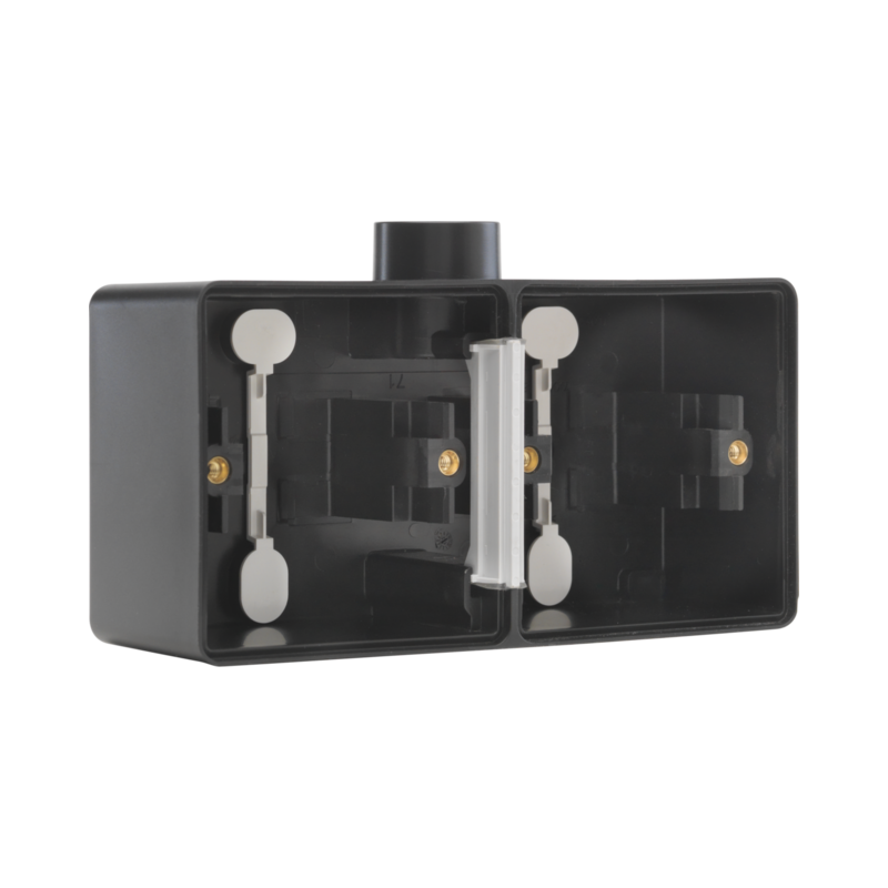 Emballage: 1 - 5 - 50 - 1200 Marque: NikoRéférence: 761-84801EAN: 5413736305960Description: BOÎTE EN SAILLIE HOR.Couleur: Noir