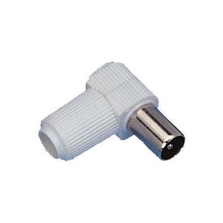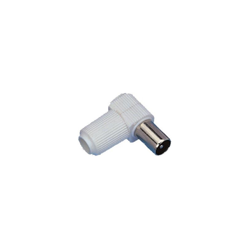 FICHE COAXIALE MÂLE 9,5MM - COUDÉE 90Ø - A VISSER - PLASTIQUE
