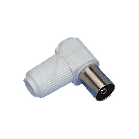 PRISE COAXIALE FEMELLE 9,5MM - COUDÉE 90Ø - A VISSER - PLASTIQUE