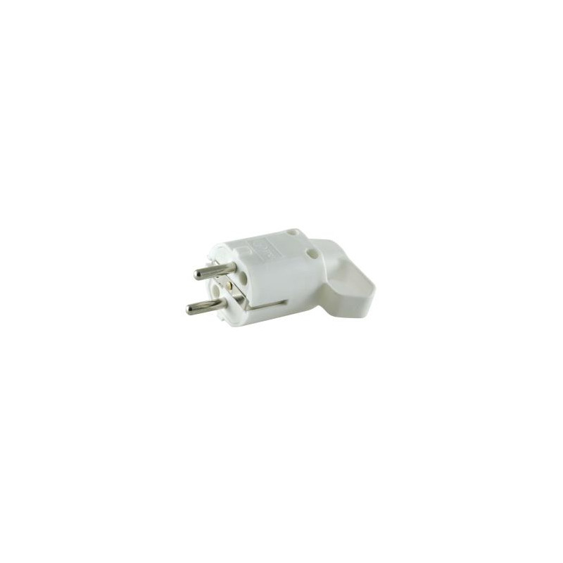 FICHE 2P+T MÂLE - 16A - 230V - BLANC - ANNEAU DE TRACTION - POLYPROPYLÈNE