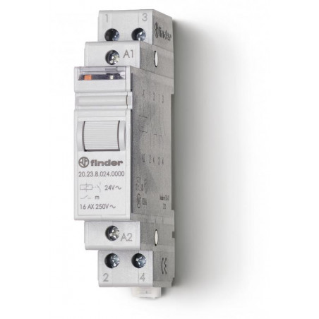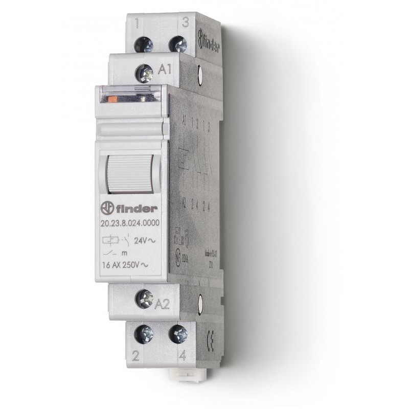 Emballage: 5Marque: FinderRéférence: 202380480000EAN: 8012823237114Description: Télérupteur modulaire interrupteur unipolaire 1NO + 1NC 16A 48V AC, bouton test et indicateur mécanique