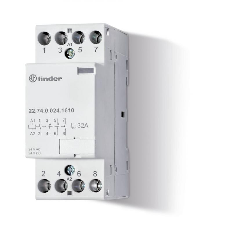Description: Contacteur modulaire 3NO + 1NC 32A 24V AC/DC, matériau des contacts AgNi, indicateur mécanique