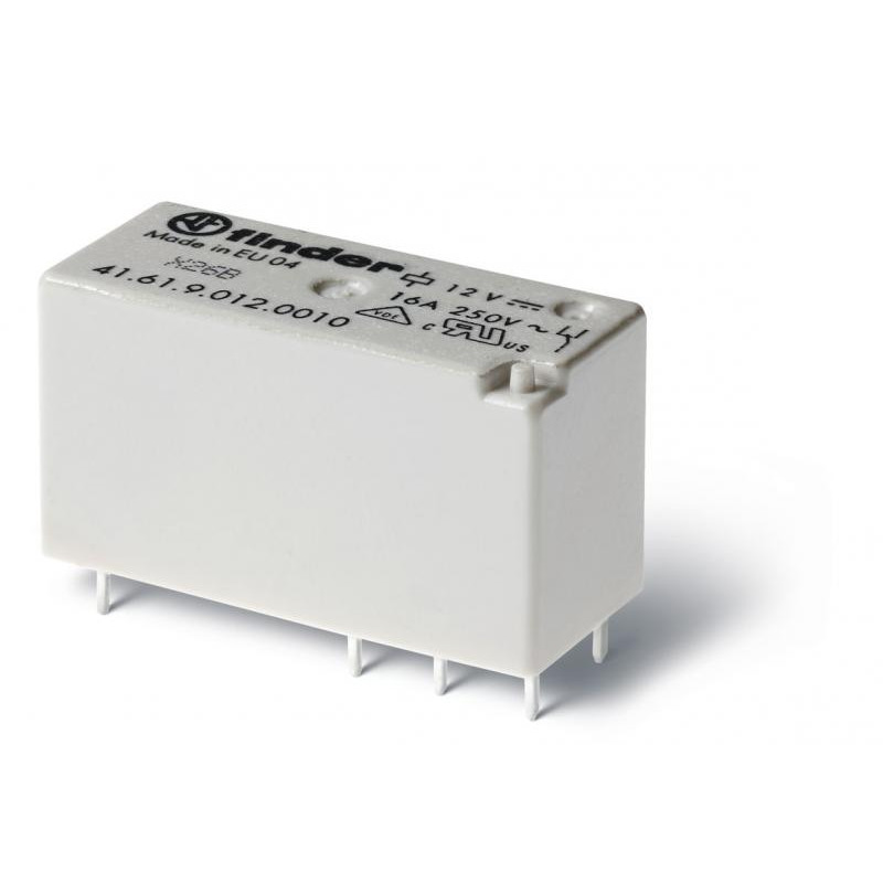 Emballage: 20 Marque: Finder Référence: 416190600010EAN: 8012823219431 Description: Relais circuit imprimé bas profil 1RT 16A 60V DC, matériau des contacts AgNi, Pas de 3,5mm