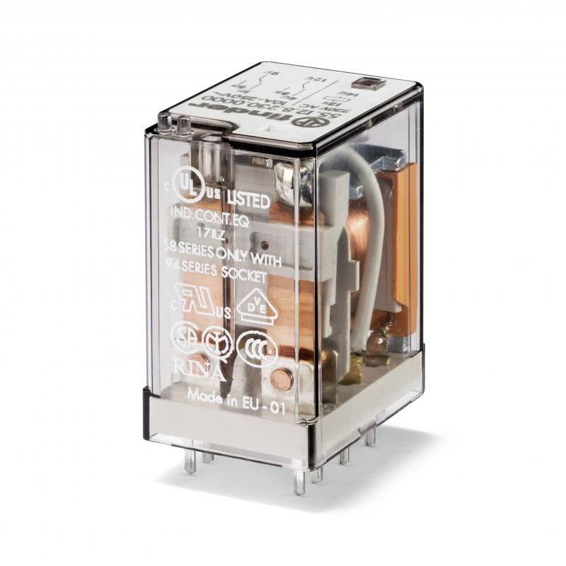 Emballage: 10Marque: FinderRéférence: 551281250000EAN: 8012823247724Description: Relais industriel, 2RT 10A 125V AC, matériau des contacts AgNi, montage sur circuit imprimé