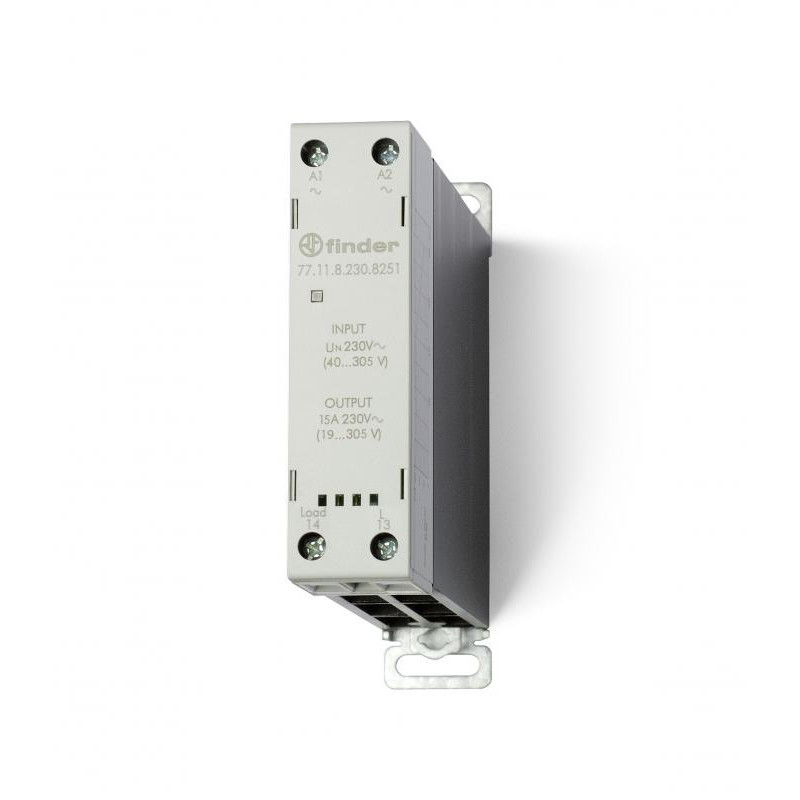 Description: Relais statique modulaire 1NO 15A 24V DC, tension nominale de sortie 24V DC, bornes à cage disposées sur les cotés opposés ''type relais'', commutation instantanée silencieuse sans arc ni rebond, largeur 22,5mm