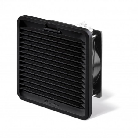 Description: Ventilateur à filtre taille 2, 120V AC, 55 m³/h, de couleur noir, puissance nominale 30W, bornes Push-in, IP54, température ambiance -15 à +55°C