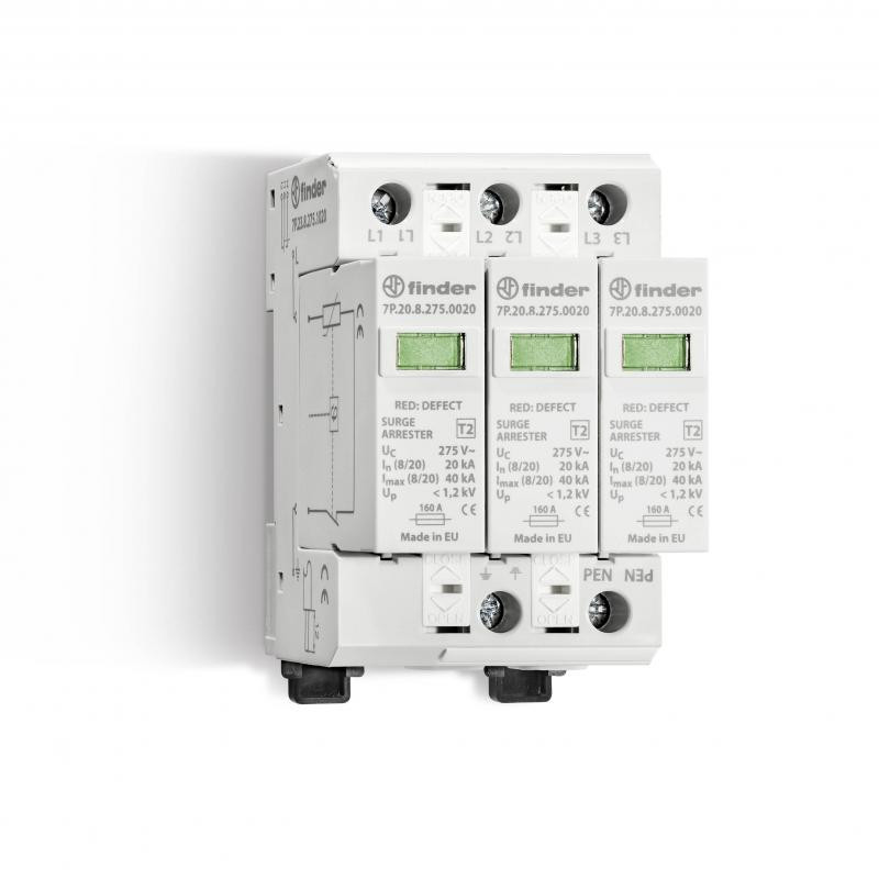 Description: Parafoudre type 2 pour SYST TRI 3 varistors extractibles Un=230VAC 20KA MAX 40KA in=1,2KV controle visuel état varistor+ Telesignalisation