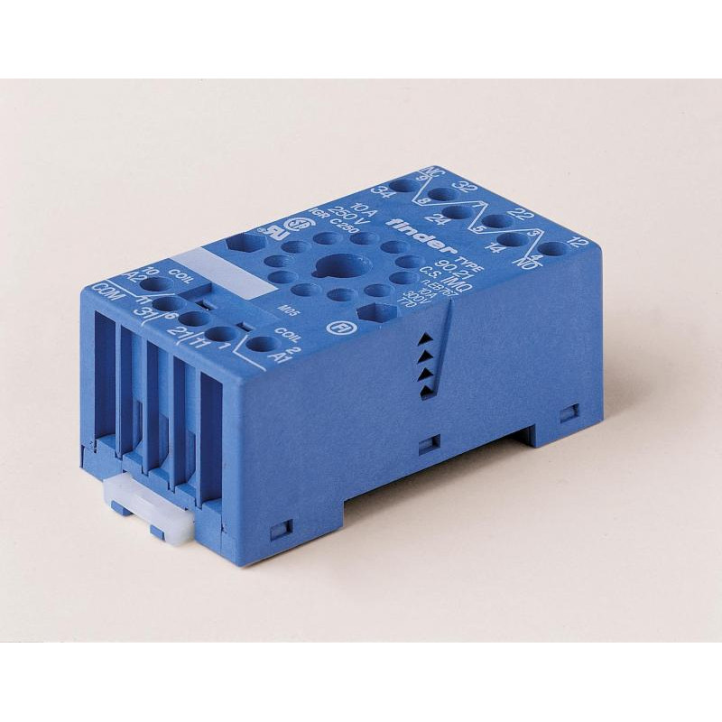Description: Support 10A 250V, température ambiante -40 à 70°C, pour séries 6013, 8802, de couleur bleue, étrier métallique, bornes à cage, montage sur panneau ou rail 35mm